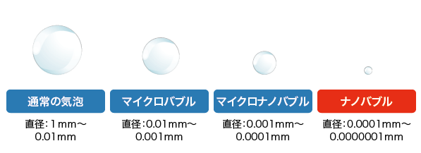 - マイクロバブル 0.01mm~0.001mm(10㎛~1㎛)
